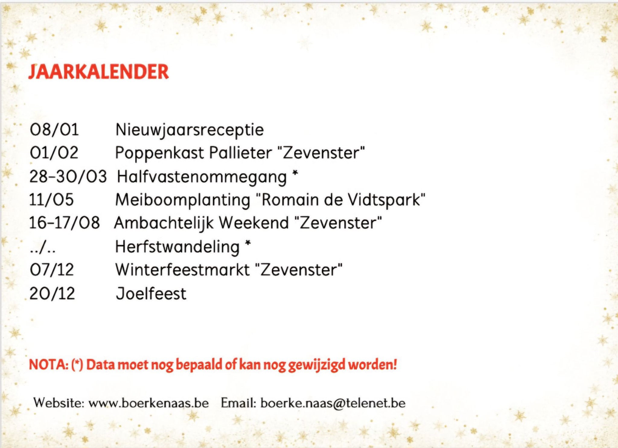 Volkskunstgroep Boerke Naas wenst eenieder het beste voor het nieuwe jaar.
